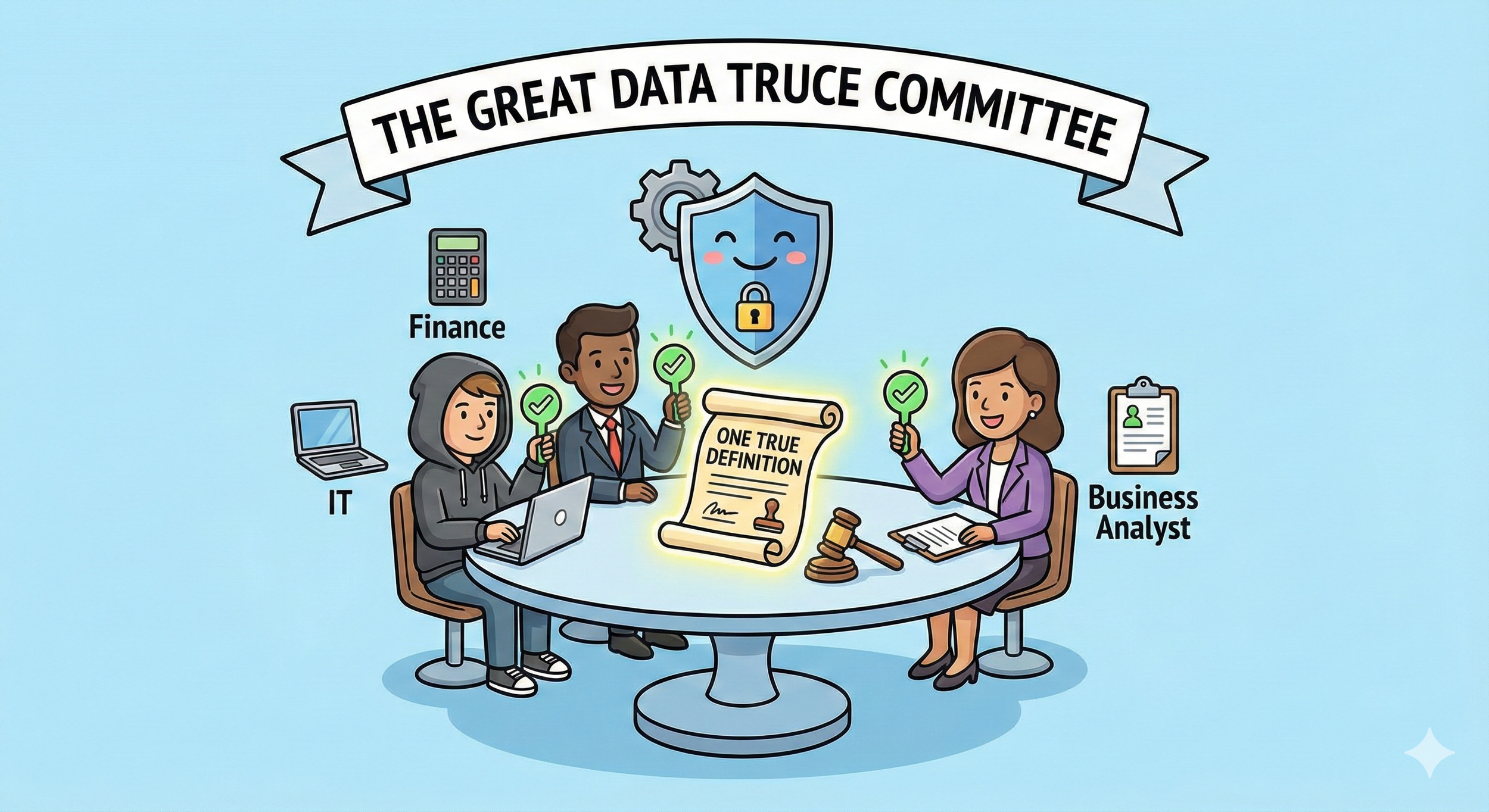 You know the feeling. You're three hours into a meeting, and someone asks, "But what do we actually mean by 'Active Customer'?" The room goes silent. The data engineer stares at the ceiling. The business analyst opens a spreadsheet that hasn't been updated since 2019. Someone mutters something about "the old definition" versus "the new definition."